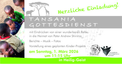 Ein weiterer „Tansania-Gottesdienst“ findet am Sonntag, 01.03. um 11.15 Uhr in Heilig Geist. Mit Eindrücken von einer wunderbaren Reise der